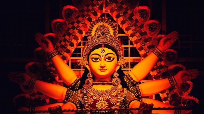 With the weapon, she got from God Shiva a trident and from Bishnu a Sudarshana chakra, meaning “disc of auspicious vision. Riding on a tiger, she fought with demons for nine days. On the tenth day, she got the triumph of evil. Thus, this celebration of success is the first nine days of Navaratri, which honor the various forms of Durga, at last Vijaya Dashami on the tenth day.